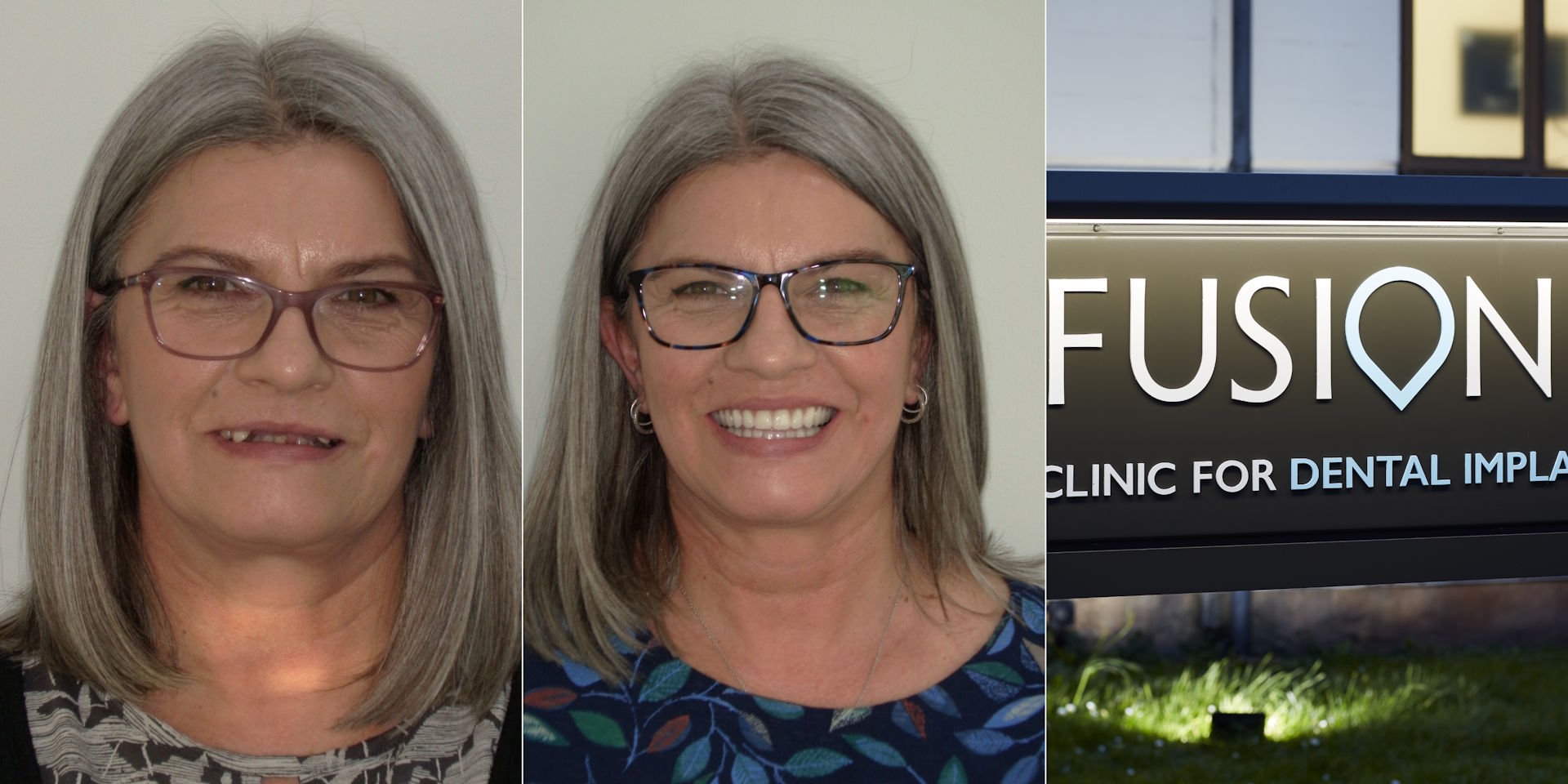 Hayley came to Fusion Dentistry with a very uncomfortable partial denture and a missing lower tooth. Gum disease caused her issues and she was worried that she wouldn’t be able to have dental implants. Hayley wanted to be to able to smile with confidence and eat properly again without her partial denture rubbing and causing her pain.